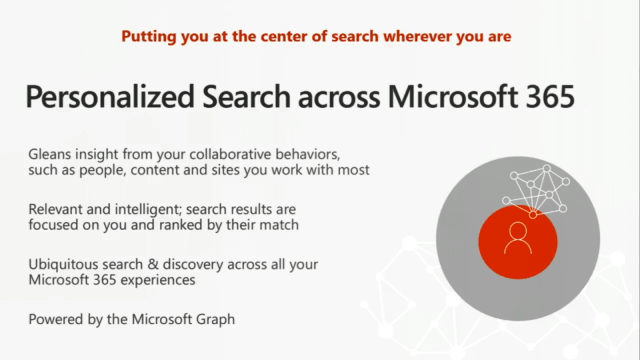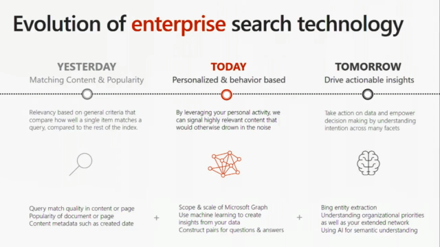 The search they are designing is an enterprise search only if we are able to drive the users work tasks into MS365. Then, all of that becomes discoverable–the enterprise becomes discoverable.