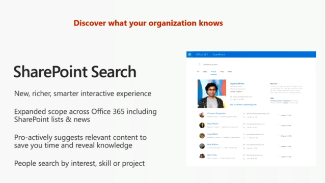 Effective search and discovery needs to know what information that is relevant to you, your colleagues, the work you do and your context right now. Find out how we have used insights across Microsoft 365 to create such a personalized search experience. A new search UX has been developed focusing on simplicity and performance enabling the user to quickly interact with a more personal and semantic organization of data. Find out how search now also supports multi-national corporations and all the improvements inside the Microsoft Graph. Also learn about the roadmap for enterprise search in SharePoint and Office 365 for new experiences, and the convergence of FAST and Bing search innovations.