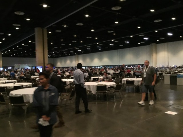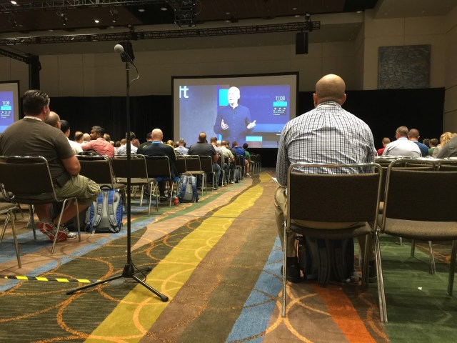 On an unrelated note, there is one woman at this conference for every 25 men. This has created a bathroom paradox the likes of which I’ve never experienced. The lines for the men’s bathroom are 50-75 deep. The lines for the women’s bathroom aren’t. The key to timely relief, and being male at an IT conference of this magnitude, is to aim high. Yes, you need to take as many escalators as possible to the top level in whichever building you find yourself. No one reaches for the sky when they need to go, that’s why I do. I had the bathroom on the fourth level all to myself. As I was coming back down the escalators, the same endless line from the main level restroom had barely moved.