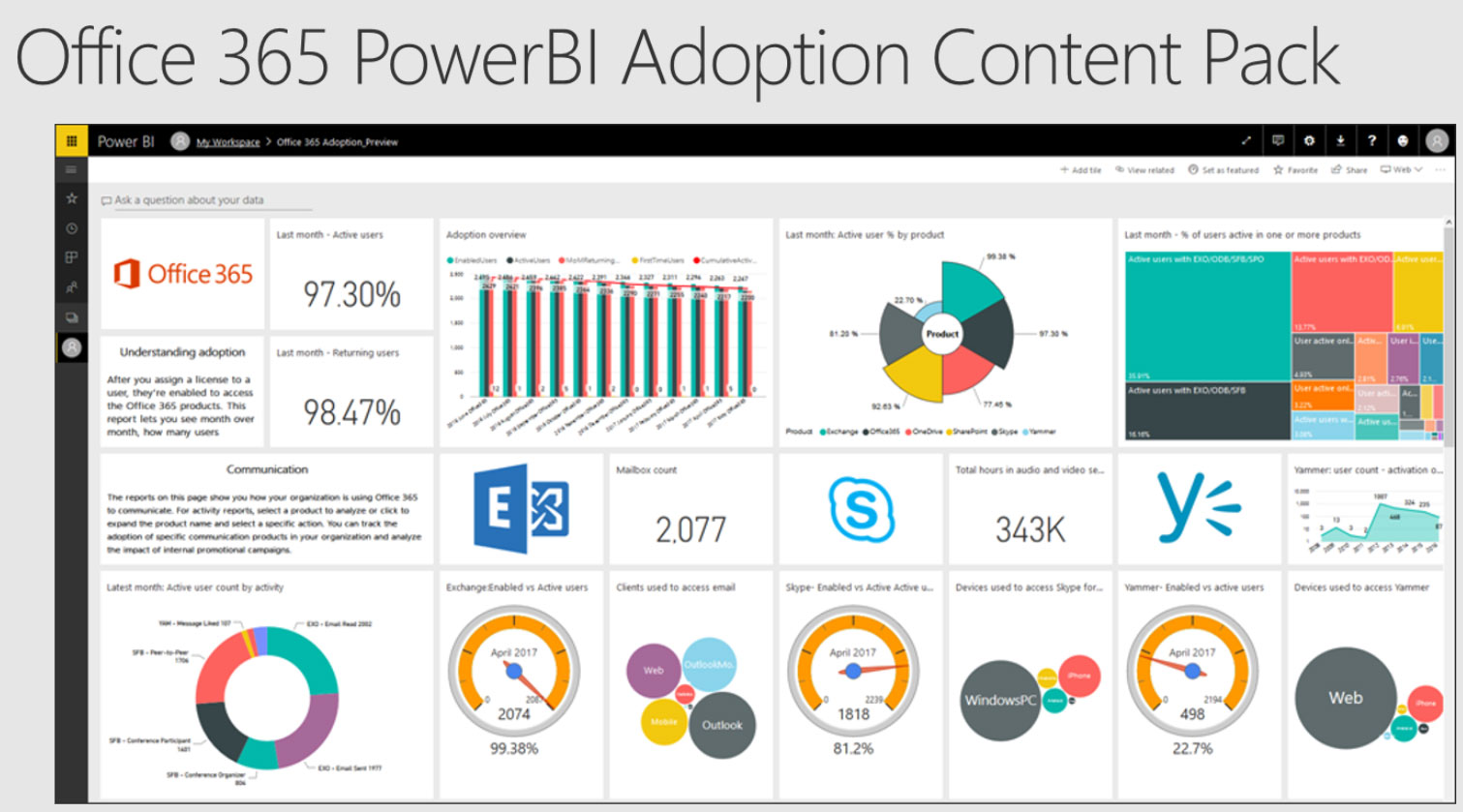 Office 365 Usage Analytics will be the new name for the Adoption Content Pack. Early 2018, this will be available/rebranded, and it will measure adoption rather than usage. We gotta get on this…