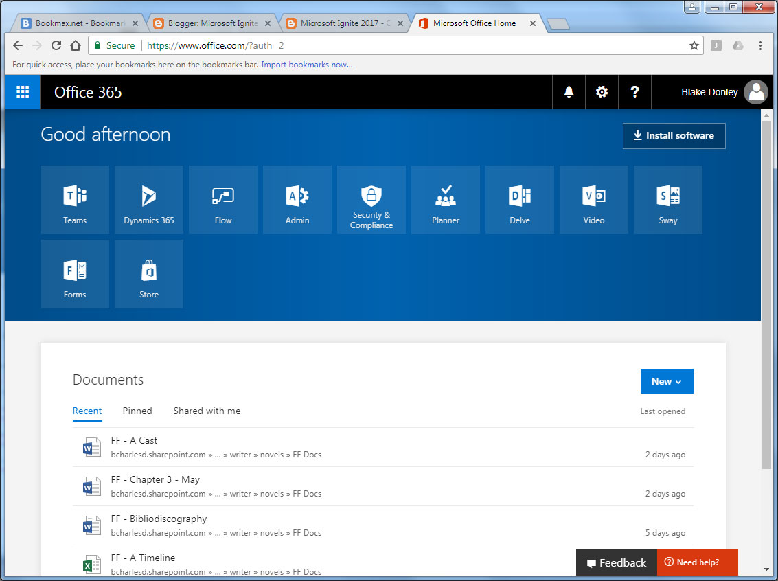 So apparently www.office.com is something to which we all have access as MS 365 subscribers. It is not entirely clear what the difference is between that and the O365 waffle. I attempted to log in with my GRE credentials and there was an “SSO error”. I can, however, log in with my personal SP site credentials. So, someone is going to have to get to the bottom of how SSO works with office.com for GRE users.