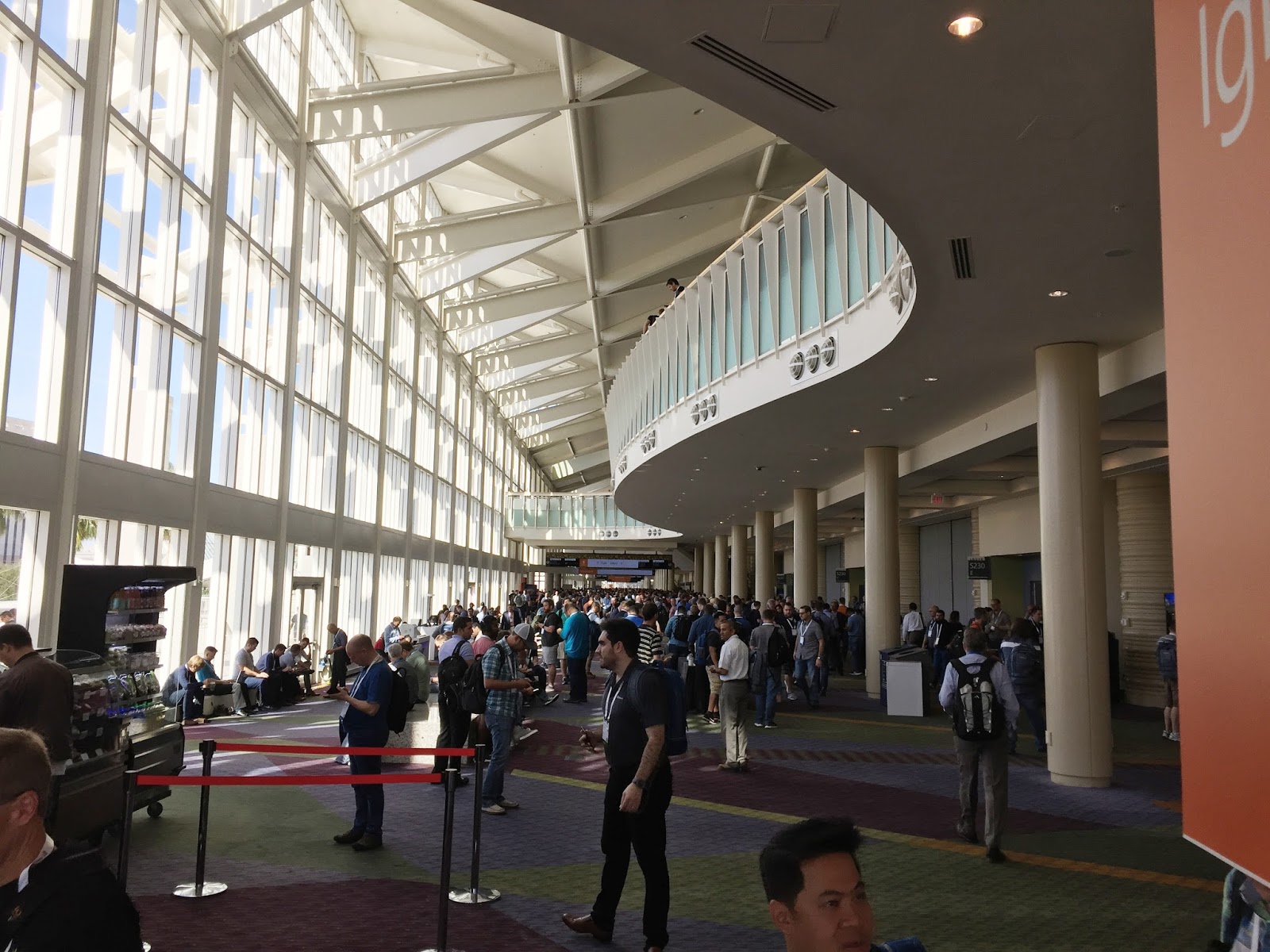 On an unrelated note, there is one woman at this conference for every 25 men. This has created a bathroom paradox the likes of which I’ve never experienced. The lines for the men’s bathroom are 50-75 deep. The lines for the women’s bathroom aren’t. The key to timely relief, and being male at an IT conference of this magnitude, is to aim high. Yes, you need to take as many escalators as possible to the top level in whichever building you find yourself. No one reaches for the sky when they need to go, that’s why I do. I had the bathroom on the fourth level all to myself. As I was coming back down the escalators, the same endless line from the main level restroom had barely moved.